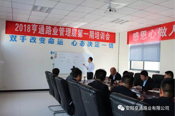 2018年4月18-20日,為加強公司管理隊伍建設,增進中層間的相互交流,培養鍛煉團隊精神和協作意識,亨通路業全體中層從天南地北各個項目返回公司集中開展了為期三天的以“感恩心做人,責任心做事”為主題的專項培訓活動。